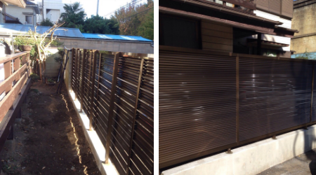 ただ生活習慣や家族構成の変化などにより定期的な手入れが難しくなってきたとのご相談をいただきましたので、メンテナンスフリーのフェンスに交換させていただきました。
